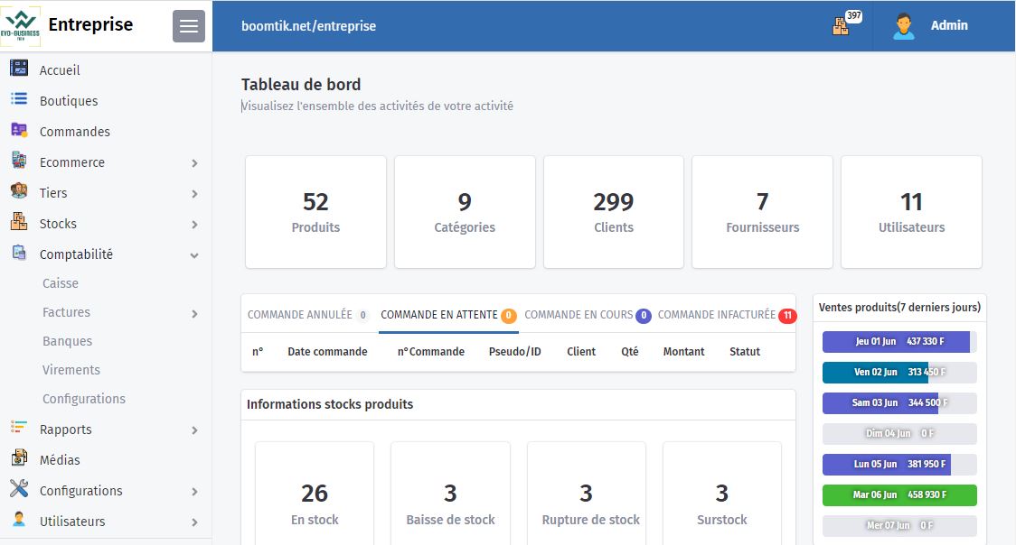 Nous accompagnons les entreprises dans l'optimisation de leur gestion grâce à BOUMTIK, une application complète offrant une multitude de fonctionnalités. Simplifiez vos processus, automatisez vos tâches, favorisez la collaboration en équipe et gérez vos finances avec facilité. BOUMTIK est l'outil idéal pour améliorer l'efficacité de votre entreprise et atteindre vos objectifs en toute simplicité.
